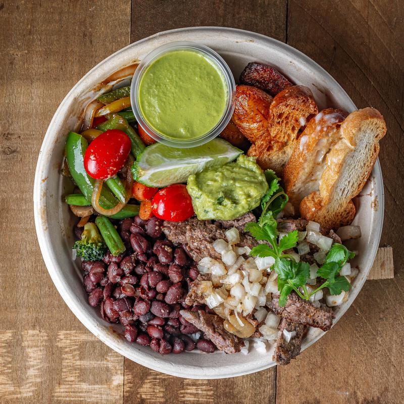 Black beans and rice are a staple in the Cuban culture. Pair our wonderful black bean and rice bowl with one of our four house proteins (lechon, pate de pate, chicken, or picadillo). Our bowls are served with 3 pieces of garlic toast made from Cuban bread and 3 sweet plantains.