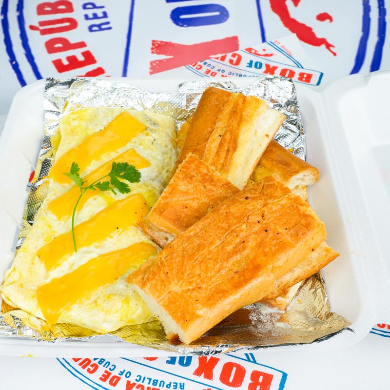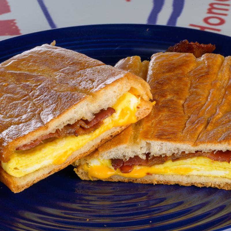 Eggs and cheese with a choice of protein (bacon, ham, sausage, turkey, or chorizo) on Cuban or Kaiser bread.